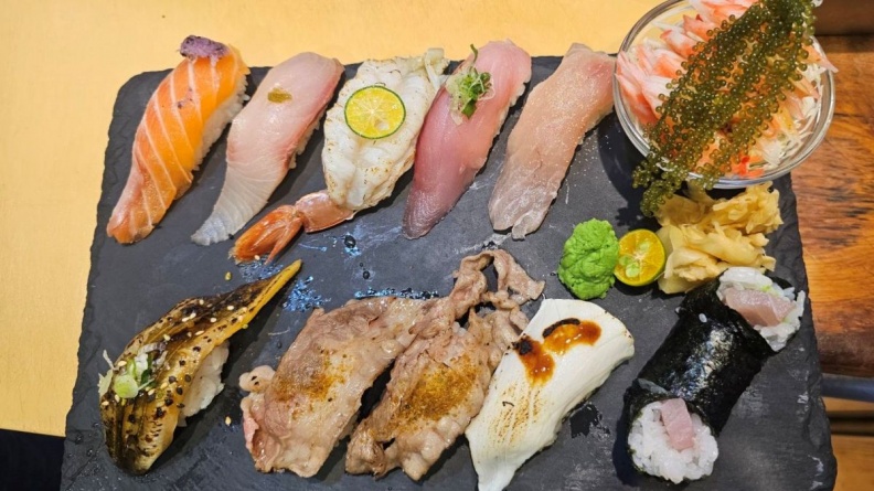 想吃新鮮美味的日式料理,就一定要來仁愛市場2樓的「漁人手作壽司」!店內魚料海產皆為崁仔頂新鮮直送,厚實又肥美,經過職人烹調跟料理,變成美味的海鮮丼飯~目前已開放內用服務,店內完全實行衛福部公告餐廳內用須配合之事項,也有持續販售外帶便當,想前往品嘗的民眾記得遵守防疫措施喔! 崁仔頂新鮮直送海產 「漁人手作壽司」位於仁愛市場2樓C76攤位,在走道上就可以看到他的招牌跟寫有「漁人」2字的白色燈籠,吧檯上方擺放白色簾布,上面有店家Logo。吧檯玻璃櫃裡面擺放著新鮮漁料,除了從台版築地市場崁仔頂取貨,海膽則是從日本進口的。除了吧檯周圍的座位,走廊也有多個方桌。提供海鮮丼飯、握壽司之外,也有比較平價的花壽司可以選擇。 ▲「漁人手作壽司」位於仁愛市場2樓C76攤位,吧檯上方擺放白色簾布,上面有店家Logo。(圖片來源:袁彬的美食旅遊筆記) ▲玻璃櫃中的新鮮漁料皆是從台版築地市場崁仔頂取貨。(圖片來源:袁彬的美食旅遊筆記) ▲盒子內除了擺放檸檬、黑豆,還有能夠增添視覺效果的櫻花魚鬆。(圖片來源:袁彬的美食旅遊筆記) ▲除了海鮮丼飯、握壽司之外,也有較平價的花壽司可選擇。(圖片來源:袁彬的美食旅遊筆記) 【看更多】 7000則好評!高CP值壽司「厚切鮭魚肚」5片只要120元,再搭滿料「魚骨味噌湯」超飽足 招牌海鮮丼魚料豐富又厚實 店家招牌「漁人海鮮丼」魚料豐富,除了生魚片,還包括大鮮蝦、干貝等,生魚片厚實大塊,肉質鮮甜;黃澄澄的厚煎蛋,蛋香誘人,還撒上粉紅色的櫻花魚鬆,增添視覺的繽紛感,替味道更加分! ▲漁人海鮮丼(250元)除了生魚片外,還包括大鮮蝦、干貝等。(圖片來源:袁彬的美食旅遊筆記) ▲粉色的櫻花魚鬆替海鮮丼飯的外觀跟口感增添不少分。(圖片來源:袁彬的美食旅遊筆記) 大塊鮭魚丼加海葡萄增添口感 吃到這碗鮭魚丼,不禁心中吶喊著:「這鮭魚丼實在太新鮮了!」鮭魚魚肉厚實大塊,味道鮮甜,分量也給得很豐富。上面撒上櫻花魚鬆,增添外觀及口感,另外還加上市面少見的海葡萄,味道甜美,啵啵口感讓人驚豔。吃完丼飯不妨再來一碗擁有滿滿魚料跟豆腐的味噌湯,味噌香氣濃郁,並以蔥花點綴,喝起來非常過癮,1碗只需要20元,CP值超高~ ▲鮭魚丼(280元)的鮭魚魚肉厚實大塊,味道鮮甜,分量很豐富。(圖片來源:袁彬的美食旅遊筆記) ▲另外還加上少見的海葡萄,增添啵啵的口感。(圖片來源:袁彬的美食旅遊筆記) ▲味噌湯(20元)香氣濃郁,還擁有滿滿魚料與豆腐。(圖片來源:袁彬的美食旅遊筆記) 【做好防疫 請佩戴口罩勤洗手】 【看更多】 ■ 海鮮控請進!高CP值「日料丼飯」1碗嘗13種海鮮,先嗑超大尾天使紅蝦、炙燒干貝 ■ 懶人必備!6家爆餡系宅配早餐:月銷5萬顆打卡饅頭、牽絲彩虹吐司、風靡韓國地瓜包 ■ 只要199元!高CP居酒屋外帶「豪華海鮮丼」生魚片、鮮蝦鋪到滿,還有蝦頭味噌湯免費喝