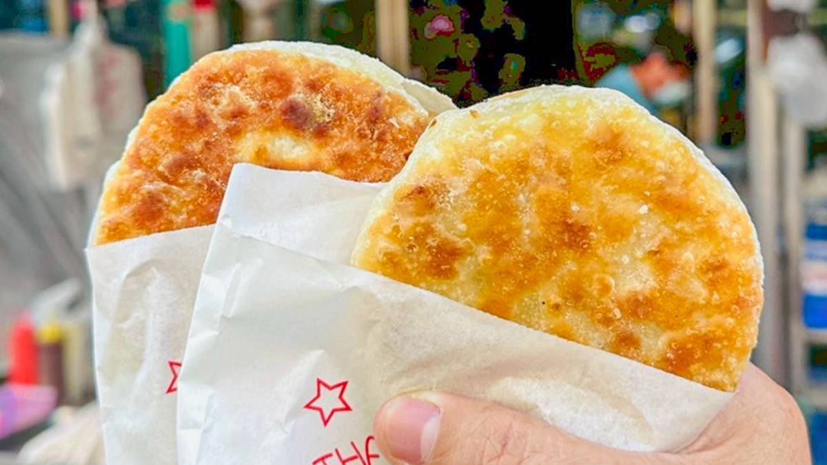 ▲披薩煎餅內餡包入:玉米粒、素食火腿丁、起司,深受學生族喜愛。(圖片來源:跟著尼力吃喝玩樂)