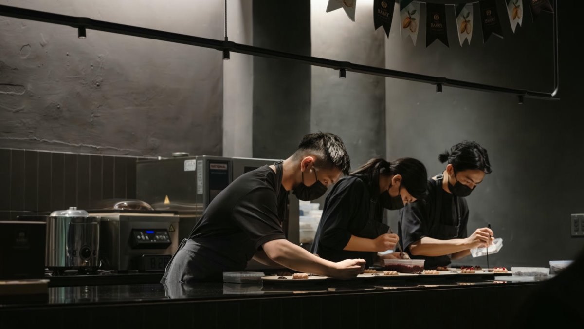 欣賞甜點師將一盤盤藝術品完成。(圖片來源:大妹食旅日常)