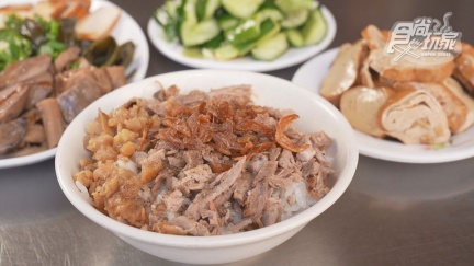 ▲「原味鴨肉麵」的「鴨肉飯」(60元)上面還加菜脯,咀嚼中更添甜味在裡頭。(圖片來源:節目部《食尚玩家》)