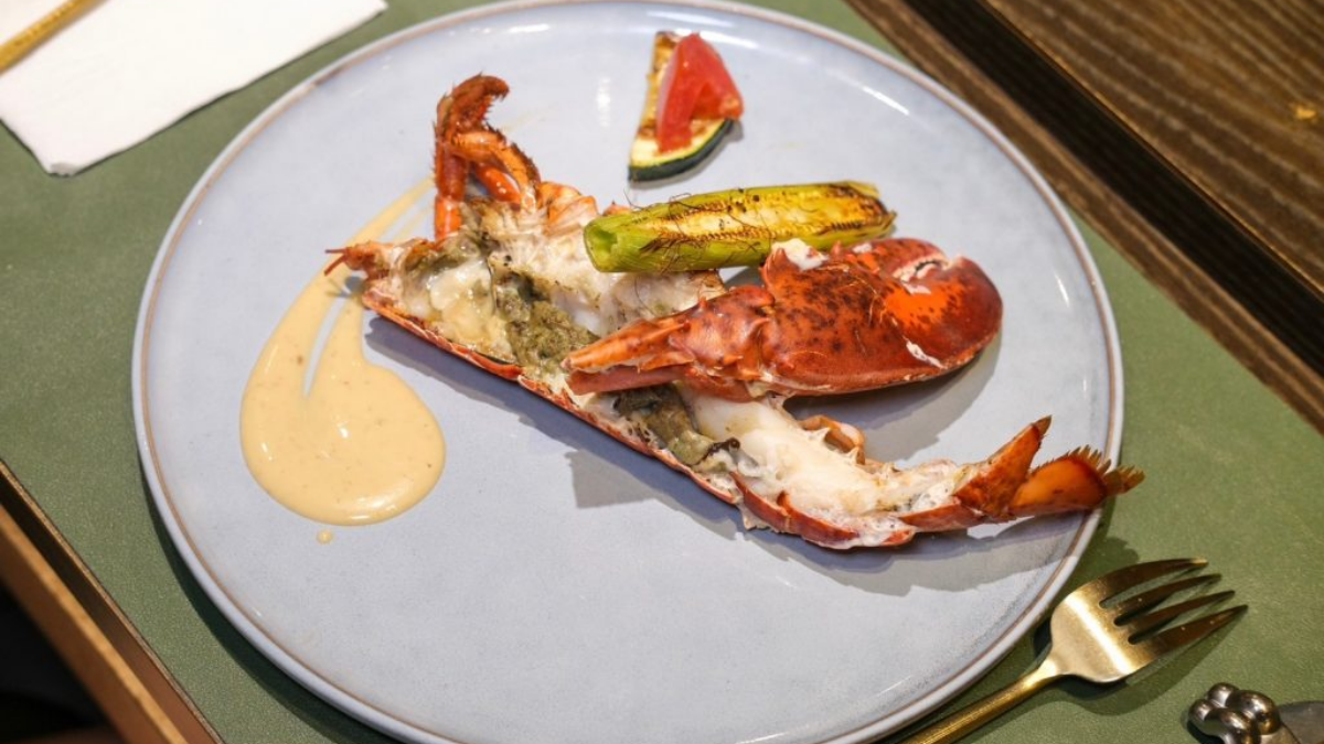 「潼鐵板燒」主打海陸鐵板料理,在台北共有3間分店,分別為新生店、至善店與故宮店,其中最具話題性的莫過於位在陽明山腳下的至善店。原木元素打造沉穩內斂的氛圍,大片落地窗映入滿眼綠意,在至善店用餐宛如置身秘境般。「潼鐵板燒」每季會根據時令食材更換套餐內容,包含4樣前菜、1道湯品和1整尾的活龍蝦,餐後還有水果、甜點和飲料。從前菜到甜點,每一道料理都能品味到餐廳的用心與巧思。