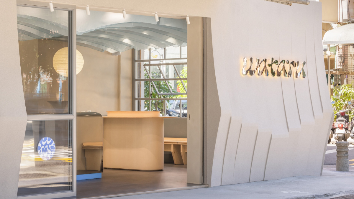 ▲店面以白色外牆、搭配波浪立面造型,內用區由核心中島與漣漪般的座位組成。(圖片來源:wataru)