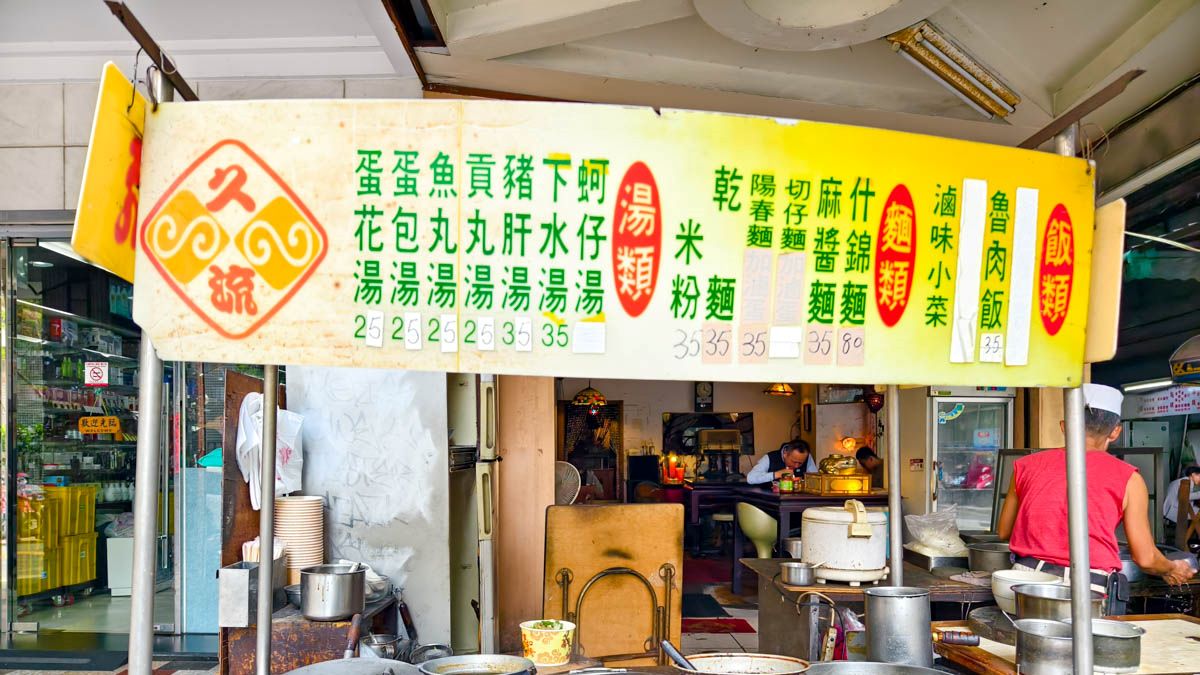 從台中火車站往前站方向散步到公園路,小小一間久流麵攤就藏在台中公園旁。店裡只有老闆一人掌杓,點餐節奏走「先找位、直接跟老闆點,等他端上桌」的老派路線;室內桌椅樸實、像把各式老家具拼起來,用餐氣氛很在地。別急,出餐會稍慢一點,但第一口熱騰騰上桌時就知道值得等。
