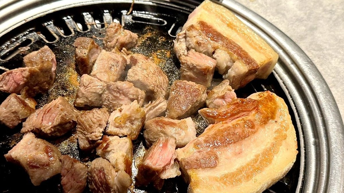 東區道地又高品質的韓式燒烤「料韓男2號店(明曜店)」,位於明曜百貨後方巷弄,距離捷運忠孝敦化站3號出口、步行約7分鐘抵達。主打韓國熟成烤五花肉,還有熟成梅花、松阪豬等多款肉品可選擇,也有專人桌邊代烤服務。「雙人肉肉拼盤」包含熟成五花+熟成梅花+松阪豬,滿足3種口感,價格約1,090元。桌邊小菜包含韓式豆芽、沙拉通心麵、韓式泡菜、蔥泡菜,都能無限續加,搭配生菜包肉超過癮。另有辣炒年糕、拌麵及、韭菜煎餅等等,價格落在160元至299元間(不含酒精飲料),價位合理且份量足。