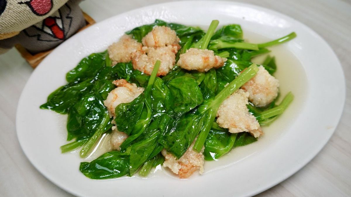 新鮮海蝦仁加上豆苗清炒。(圖片來源:貓大爺部落格)