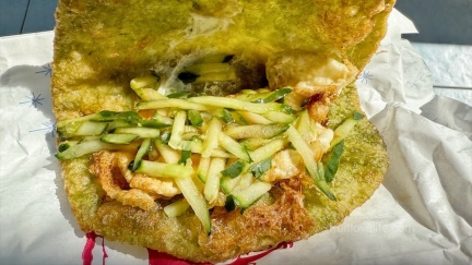 蛋餅的外皮非常Q,不會粉爛且帶點焦香。(圖片來源:Ann‧榜哥‧生活事務所)
